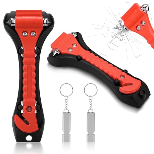 2 Stück Nothammer Auto Notfallhammer mit Gurtschneider, 2 in 1 Sicherheitshammer Auto mit Gurtschneider Auto Sicherheits Hammer mit 2 Trillerpfeife, Sicherheitshammer mit Gurtmesser fürs Auto Bus PKW