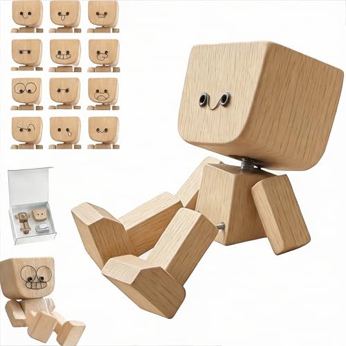 Aeyytoe Schüttelmann Wackelfigur Auto, Wackelnder Holzmännchen Figur mit 12 magnetischen Ausdrücken Schwankt, Lustiger wackelnder Holzmann, Schreibtischdeko, niedliches Auto