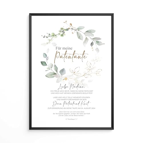 PATENBRIEF Eukalyptus Kranz personalisiert als Geschenk zur Taufe, Paten, Patentante, Patenonkel, Poster, Patenkind, Taufbrief