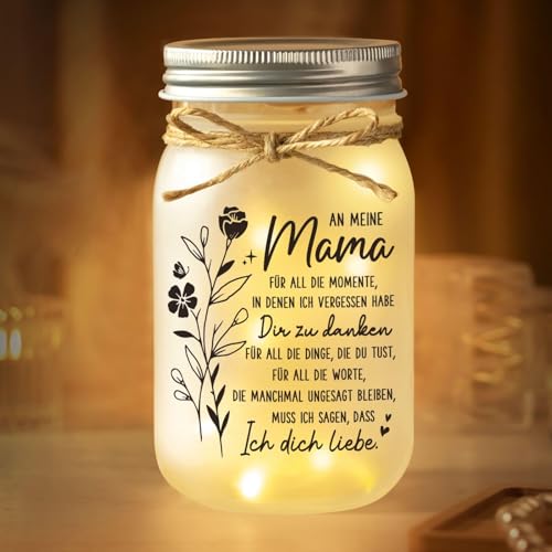 Juratar Personalisiertes Mason Jar Nachtlicht - Geschenk für Mama von Tochter und Sohn - Heimat Dekoration und Muttertagsgeschenke