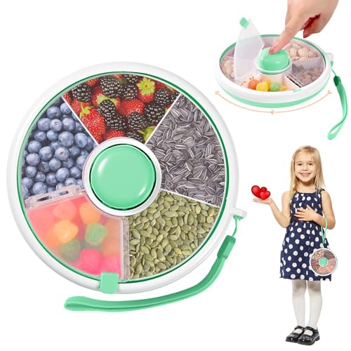 Vefacion Snack Spinner Kinder Snackbox mit Fächern Rund Reusable Snack Organizer Snacks Melone Süßigkeiten Obst Organizer