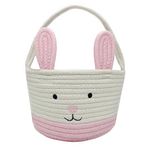 Osterkorb, Osterhasenkorb mit Griff, Osterkörbe für Kinder, Baby-Geschenkkorb, Eiereimer, Geschenke, Tragetaschen, Eiersuchkorb für Jungen, Mädchen, Kleinkinder, Babys, Säugling (Rosa)