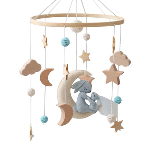 Mobile Baby Mond Hase Baby Bettglocke mit Sterne Wolken Windspiele Baby Mobile Niedlich Babyzimmer Deko Neugeborene Geschenk für Jungen Mädchen
