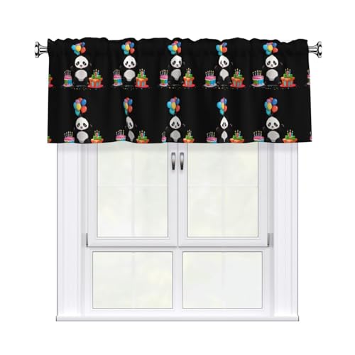 WHJDPP Happy Birthday to Baby Panda Picture Short Curtains with Volant Rod 137.2x45.7 cm Home Decor for Kitchen Bathroom Laundry Room Studio Upper Window