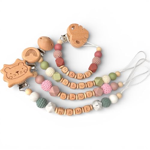 handmadebyemelyh - personalisierte Schnullerkette mit Namen für Junge oder Mädchen mit großer Farbauswahl, indiviudell selbst gestalten, lasergravierte Holzbuchstaben, zur Schwangerschaft & Geburt