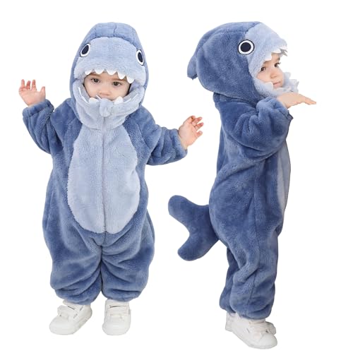 Doladola Baby overall Animal Leopard OnesieBaby Strampler mit Kapuze Säuglingsoverall-Pyjama(2-3 Jahre, Blauer Hai)