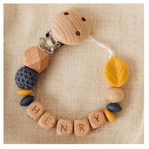 Storchenkind® – Liebevolles, handgemachtes Babyaccessoire, personalisiert mit Namen (blau/gelb)