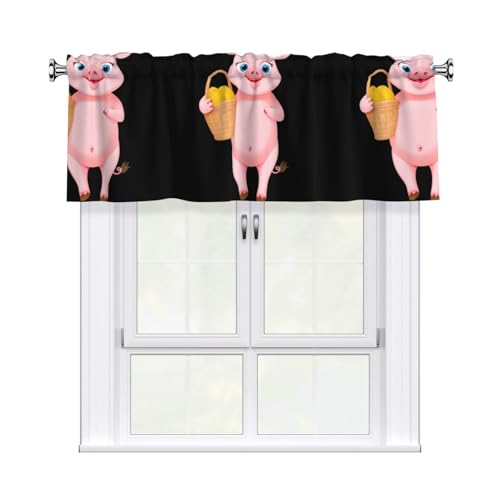 YYHWHJDE Little Pink Pig Carrying Mango Printed Curtain with Short Pole, 137.2x45.7 cm for Enhancing Kitchen Windows, Bathrooms, Laundry Rooms, and Studios