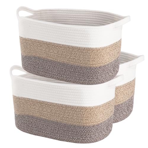 AOFANGSHIYE Baumwolle Seil Aufbewahrungskorb-3-Stück-Set (Weiß Braun) | Baby Geschenkkorb, Kinderspielzeug Aufbewahrungskorb und Kinderwäschekorb | Regalkorb