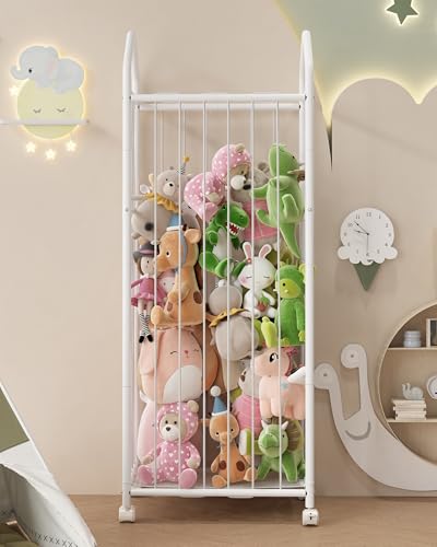UMDONX Kuscheltier Aufbewahrung mit Rädern,Stofftier Organizer,Spielzeug Aufbewahrungskorb,154 x 56 x 35 cm,Weiß