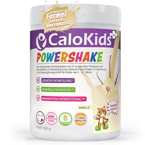 Hochkalorische Trinknahrung für Kinder, Nährstoffreicher Shake mit Vitaminen & Mineralstoffen, Unterstützt Wachstum, Immunsystem & Entwicklung, Kinder Smoothie | CaloKids + (Vanille 500g)