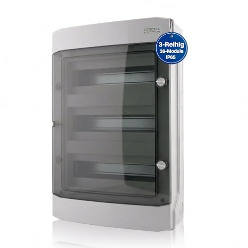 Intratec Verteilerkasten Aufputz 3 reihig – IP65 Sicherungskasten für 36 Module – Feuchtraum Verteiler für Garten, Keller, Garage & Außenbereich – 400VAC 1500VDC Kleinverteiler, 319 x 508 x 144 mm