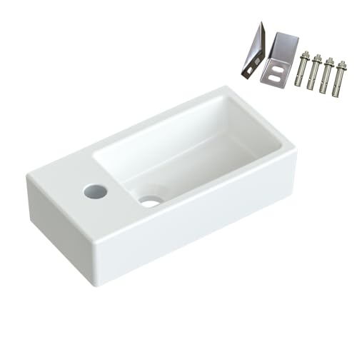 YAKE Handwaschbecken klein gäste wc Waschbecken weiß 40,5x 20x 10,5cm hängend Wandmontage Bad Waschplatz Waschbecken mit Wasserhahnloch aus Keramik rechteckig Design