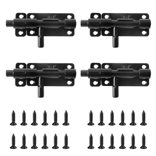 XHYASD 4 Stück Türriegel Edelstahl Schwarz, Sicherheits Riegelschloss mit Schrauben, Schieberiegel mit Vorhängeschlossloch, Gartentor Bolzenriegel für Türen Fenster Zäune