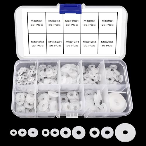 YIXISI 230 Stücke M3 M4 M5 Silikon Flache Unterlegscheiben Sortiment Kit, Dichtungs Silikon Unterlegscheiben, für Schrauben/Wasserhähne/Gartenschlauch, Weiß