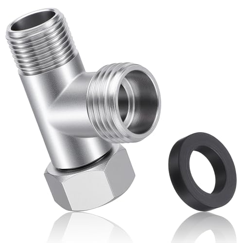LXUEJIE 3 Wege Ventil T-Stück, Messing T-Anschlussstück 3/8" Gerade & 1/2" Seitlich T Stück Wasseranschluss Verteiler mit 1 Unterlegscheiben T-verbindungsstück für WC-Tank Waschmaschine Brausearmatur