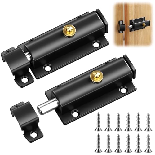 2 Stück Türriegel Innen, Automatische Türriegel, Federriegel Schlossriegel, Riegelschloss Gartentor Riegel Schubriegel mit Schrauben, Schiebeschloss für Fenster, Schranktüren, Tierkäfige usw