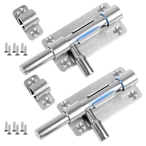 Türriegel Edelstahl, 2 Stück Bolzenriegel, Riegel Tür mit 12 Schrauben, 4 Zoll Riegel und Bolzen für Türschlösser, Türriegelbolzen zum Türriegel innen, Schieberiegel, Gartentor riegel, Fenster