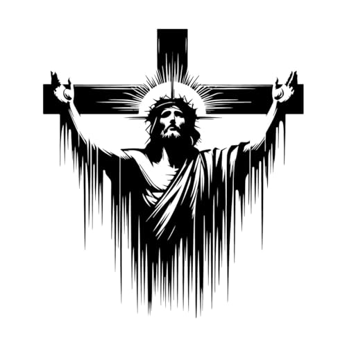 Gravuraufkleber Kreuz mit Jesus-Silhouette-Kunst 67.2x74.6cm Tattoo-Kultur Schwarz