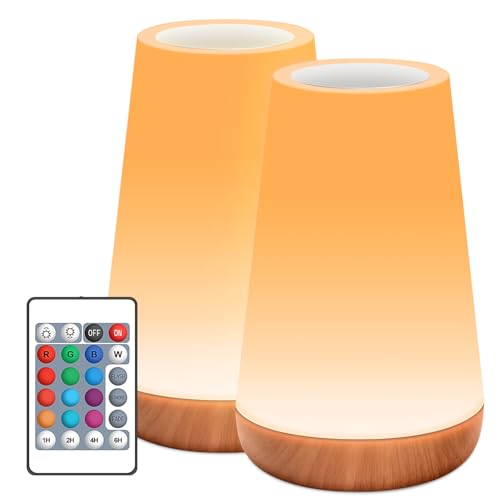 Auxmir Nachttischlampe 2er Set 5 Modi RGB Farbwechsel, Nachtlicht Kinder USB Aufladbar Fernbedienung, LED Lampe Tischlampe Kabellos Touch Dimmbar mit Timing Funktion, Stilllicht für Deko Schlafzimmer