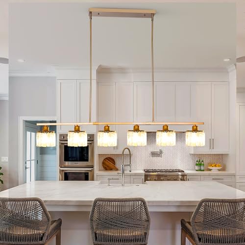 Ganeed Kücheninsel Beleuchtung Esszimmer Deckenleuchte Einstellbare Moderne Deckenpendelleuchte Lineare Kronleuchter über Tisch mit K9 Kristallschirm Gold 6 Lichter