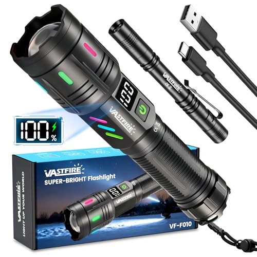 VASTFIRE Taschenlampe LED Aufladbar 500000 Lumens, Extrem Hell 30W USB Taktische Taschenlampen Batterie, Wasserdichte Starke Flashlight Torch mit Stiftlampe, für Camping, Wandern, Outdoor, Notfäll