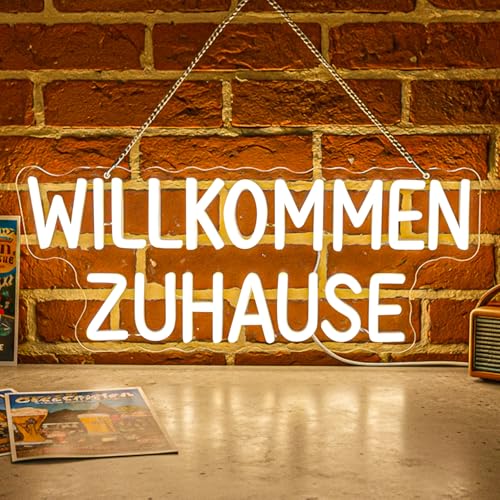 Astuddy Willkommen Zuhause Neon Schild, Warmweißes LED Neonlicht, Dimmbar Brief Leuchtschild USB Willkommen Neon Sign für Eingang, Flur, Wohnzimmer, Haustür, Party, Einweihung Geschenk