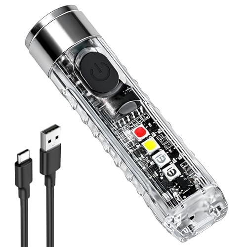 Mini Taschenlampe Schlüsselanhänger mit USB Ladekabel, Wiederaufladbare LED Schlüsselbund Taschenlampe mit Seitenlicht UV Weiß Rot Blau, Magnetisches Kleine Taschenlampen für Wandern Notfäll Camping