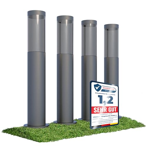 linovum BOSEA-A 4 Stück Außenleuchten Garten stehend E27 Fassung, Höhe 50 cm - Pfostenlichter aus Edelstahl mit Smoky Kunststoff Glas Sockelleuchten