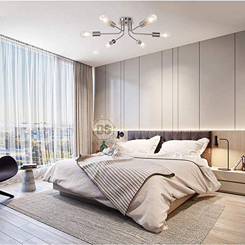 Kronleuchter 6-Flammige Deckenleuchte, Halbbündigepe,-Deckenleuchte Aus Schmiedeeisen, Große Kreative Beleuchtungsvorrichtung, E27-Lampenfassung/Silber/a