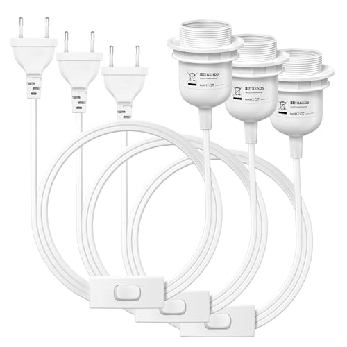 KEAGAR 3 x E27 Lampenfassung mit Schalter mit Stecker, E27 Fassung mit 3,5m Kabel Schraubring - Küche, Wohnzimmer und Kinderzimmer - Weiß 3pcs