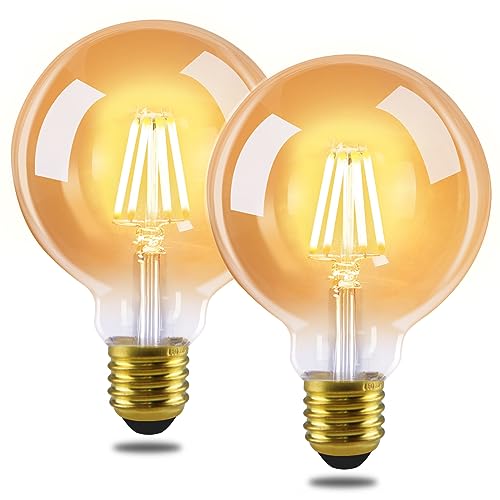 GBLY 2 Stück LED Glühbirne E27 Vintage Lampe - G95 Warmweiss Filament Leuchtmittel 2700K 4W Edison Retro Glühlampe Warmweiß Birne Glas Antike Energiesparlampe für Haus Hotel Café Bar