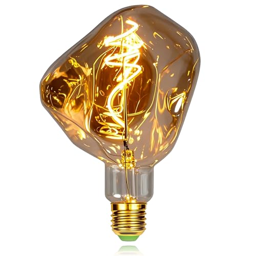TIANFAN Vintage LED-Glühbirne G125, speziell geformter Stein, 2000 Kelvin, 4 W, dimmbar, 220–240 V, dekorative Edison-Glühbirne E27