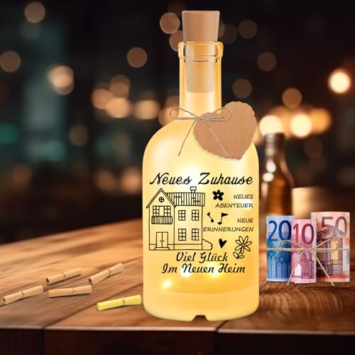Geschenk zum Einzug Flaschenlicht mit Spruch, Einweihungsgeschenk Wohnung, Einzugsgeschenke Haus Beleuchtete Dekoflasche mit Korken, Geschenk zum Richtfest für Beste Freundin Kollegen Frauen (XFZ)
