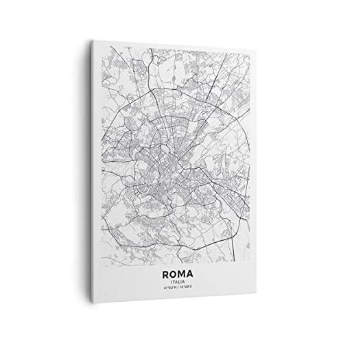 Bilder auf Leinwand Stadt Karte Rom Leinwandbild mit Rahmen 50x70cm Wandbilder Dekoration Wohnzimmer Schlafzimmer Küche Deko Groß Wanddeko Bild Wand Kunstdruck Art Wall Decor Canvas PA50x70-4682