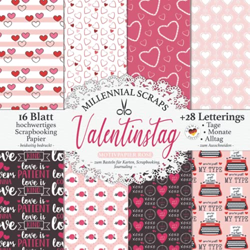Valentinstag Motivpapier Rosé – zum Basteln für Karten, Scrapbooking, Journaling –: Bastelpapier, Zubehör & Deko zum Ausschneiden I Mit Letterings ... Dekor I Washi Tape I DIY Papier Bastel Set