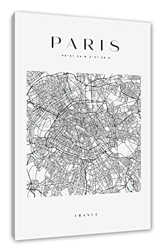 Pixxprint Stadtkarte Eckig - Paris als, Größe: 60x40cm, Leinwandbild, fertig gespannt, Wandbild, Dekoration, Kunstdruck, kein Poster