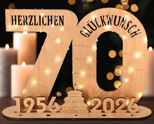 Giftota - 2026 Originelle 70 Geburtstag Geschenk Frauen & Männer - Geldgeschenke Geburtstag 70 mit LED Lichterkette Ständer - Holz-Schild Gästebuch - 70 Geburtstag Deko - Personalisierbares Geschenk