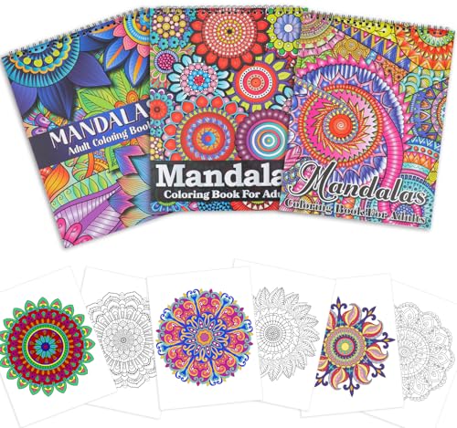 Thuro 3 Stück Mandalas-Malbücher für Erwachsene,Malbuch-Set für Erwachsene für Frauen,60 Entspannende Mustern,Spiralbindung Malbücher für Frauen und Männer
