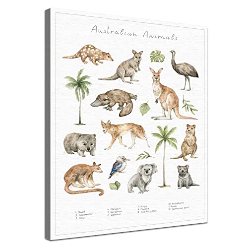 LANA KK Leinwandbild - Tierwelt Australien – für Kinder, Globus, Erde, Tiere, liebevoll gezeichnet, englisch, 40 x 60 cm