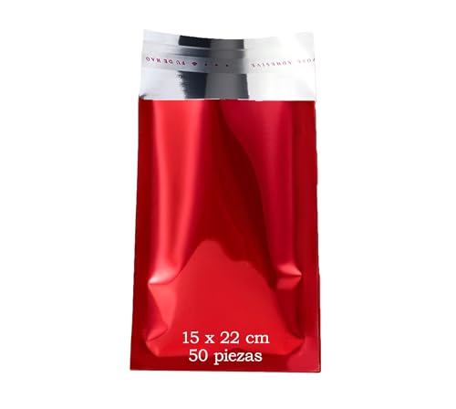 Metallic-Umschläge mit selbstklebendem Verschluss, Metallic-Beutel, Farben, für Geschenke, Büro und Einladungen, Hochzeitsgäste, Karten, Events (rot, 15 x 22 cm (50 Stück))