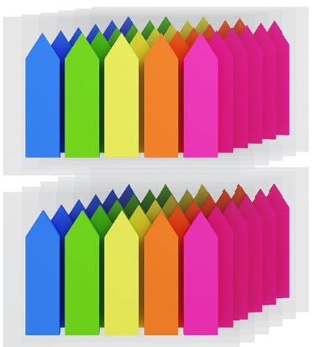 KIFZM 1500 Stück Pfeil Index Marker, 12 Sets in 5 Farben,wiederverwendbare Haftfahnen, einfache Index-Tabs, Haftnotizen,Seitenmarker Zum Hervorheben von Informationen in Verträgen,Büchern oder Akten