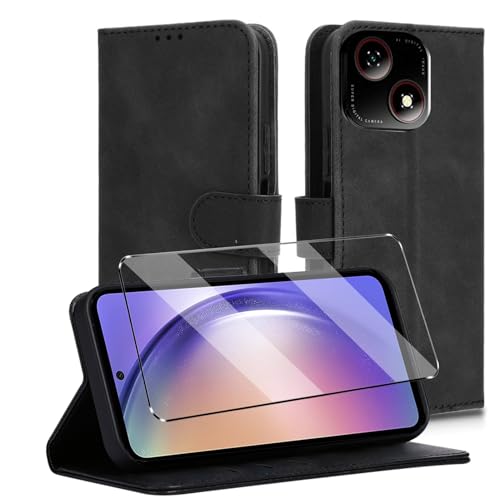 HuiYouMY Compatible with ZTE Blade A35E Hülle Klapphülle, [Verdicktes TPU] [Kartenfächer] [Standfunktion] [Magnet], Stoßfeste Schutzhülle, Cover Compatible with ZTE Blade A35E Schwarz