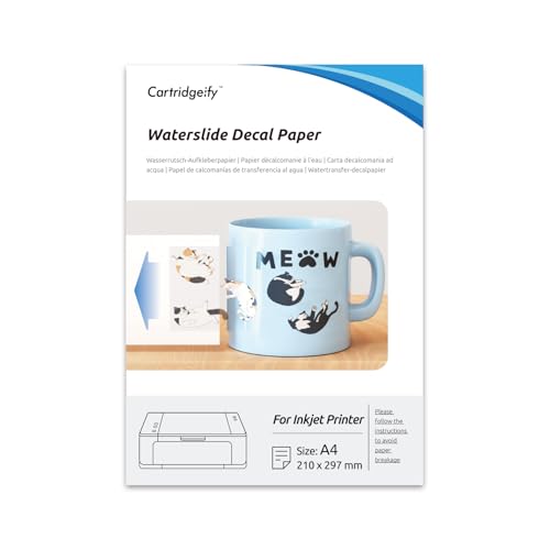 Cartridgeify Wassertransferpapier Tintenstrahldrucker A4 Transparent, 15 Blatt DIY Folie für Tassen, Spielzeugmodelle, Teller, Glas, Kerzen, Kunststoff, Kompatibel mit Tintenstrahldruckern