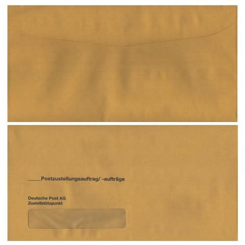 Postzustellungsumschläge Standard „ Postzustellungsauftrag “ - Zustellungshüllen mit Fenster 120 × 235 mm, nassklebend, Recycling-Gelb, 80 g/m², Kuvertierhüllen für förmliche Zustellungen - Anzahl 25
