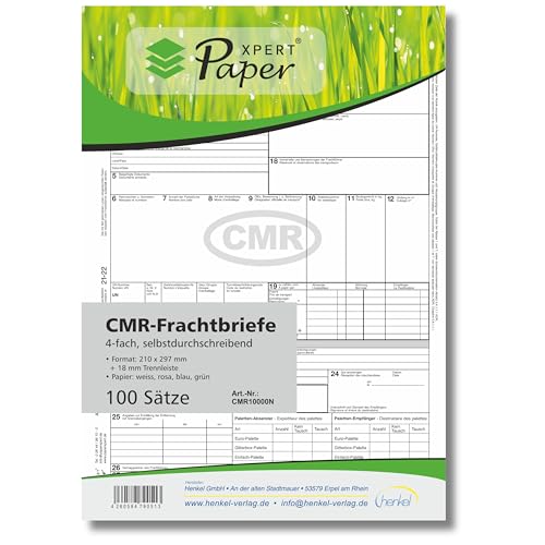 PaperXpert CMR Frachtbrief x 100 | 4-fach selbstdurchschreibend | Trennsatz für internationalen Güterverkehr | Premium Markenqualität | nach neuestem ADR-Standard - Made in Germany