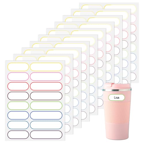 Yuomeaz Namensaufkleber 160 Stück, Beschriftungsetiketten Selbstlaminierende Namenssticker Wasserdichte Namensetiketten, Farbige Randflaschenetiketten für Haushalts und Büroaufbewahrungsbehälter