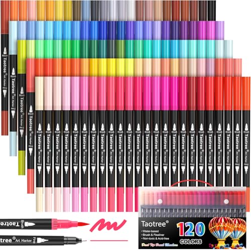 Taotree 120 Farben, Doppelspitze, Kunstmarker für Kinder und Erwachsene, Malbuch, Künstler, feine und Pinselspitze, Malmarker, Zeichenstifte, Bastelbedarf, für Tagebuch, Notizen, Beschriftung