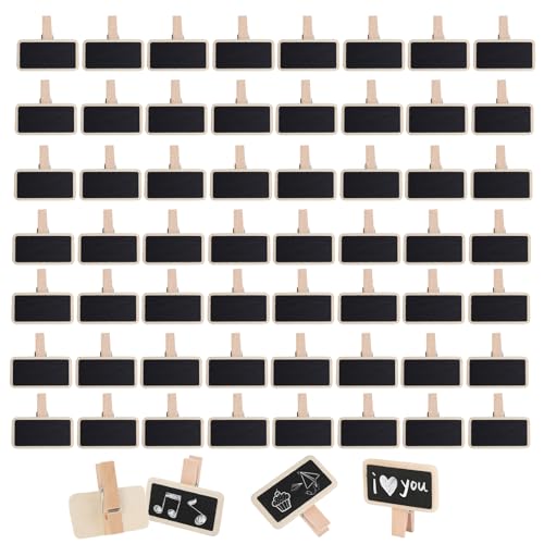 60 Hölzern Mini Tafeln mit Klipp, 4x2 cm Rechteckig Kreidetafel Klein, Kleine Tafeln zum Beschriften, Deko Klammern Holz Tafel, Mini-Tafelns Aus Holz für Pflanzen Memo Notetaking Party Food Label