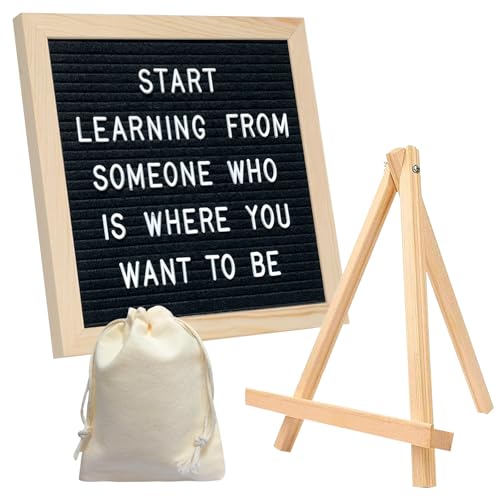 Letterboard 25x25cm Filz Stecktafel mit Staffelei und 400 Buchstaben Schwarzes Wooden Buchstabentafel Kreative Briefbrett für Küche Büro Hochzeiten